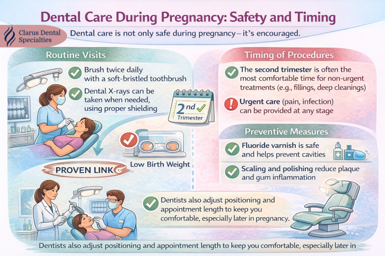 Dental care is not only safe during pregnancy—it’s encouraged.